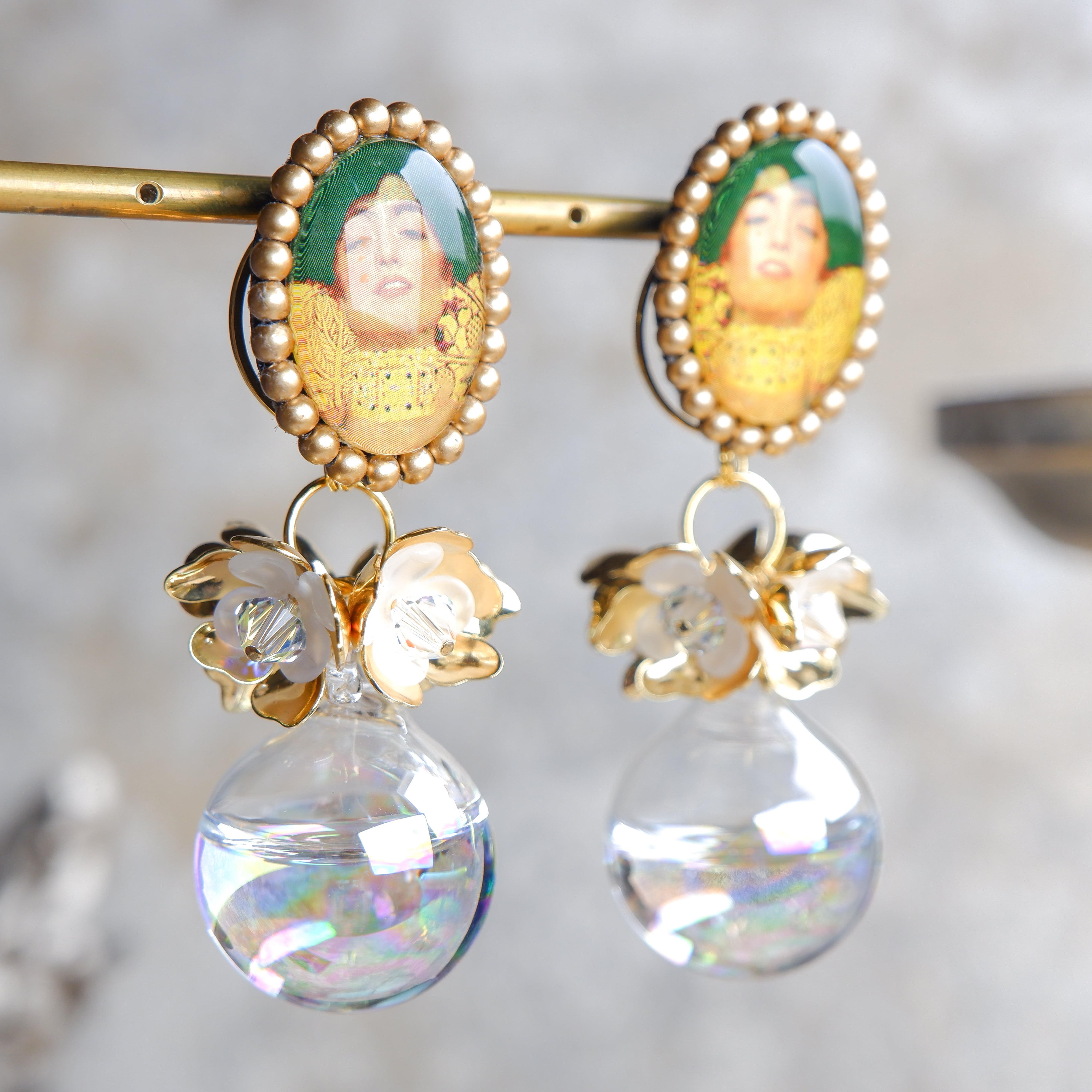 グスタフ・クリムトの名作をモチーフにしたイヤーアクセサリー。