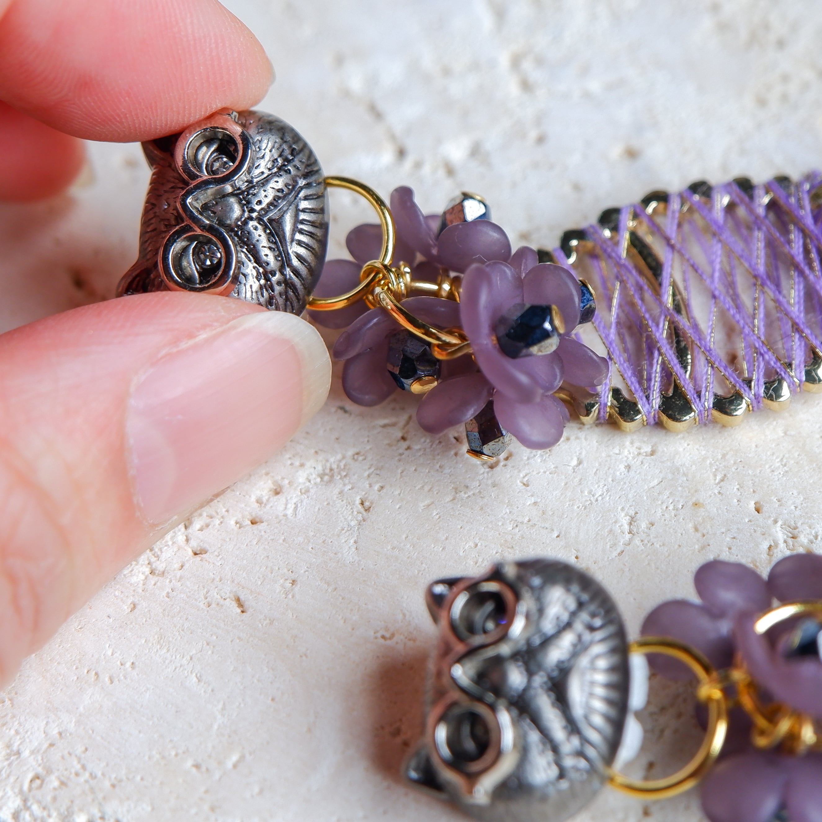 その下には、淡い紫の小花と煌めくビーズをあしらい、
